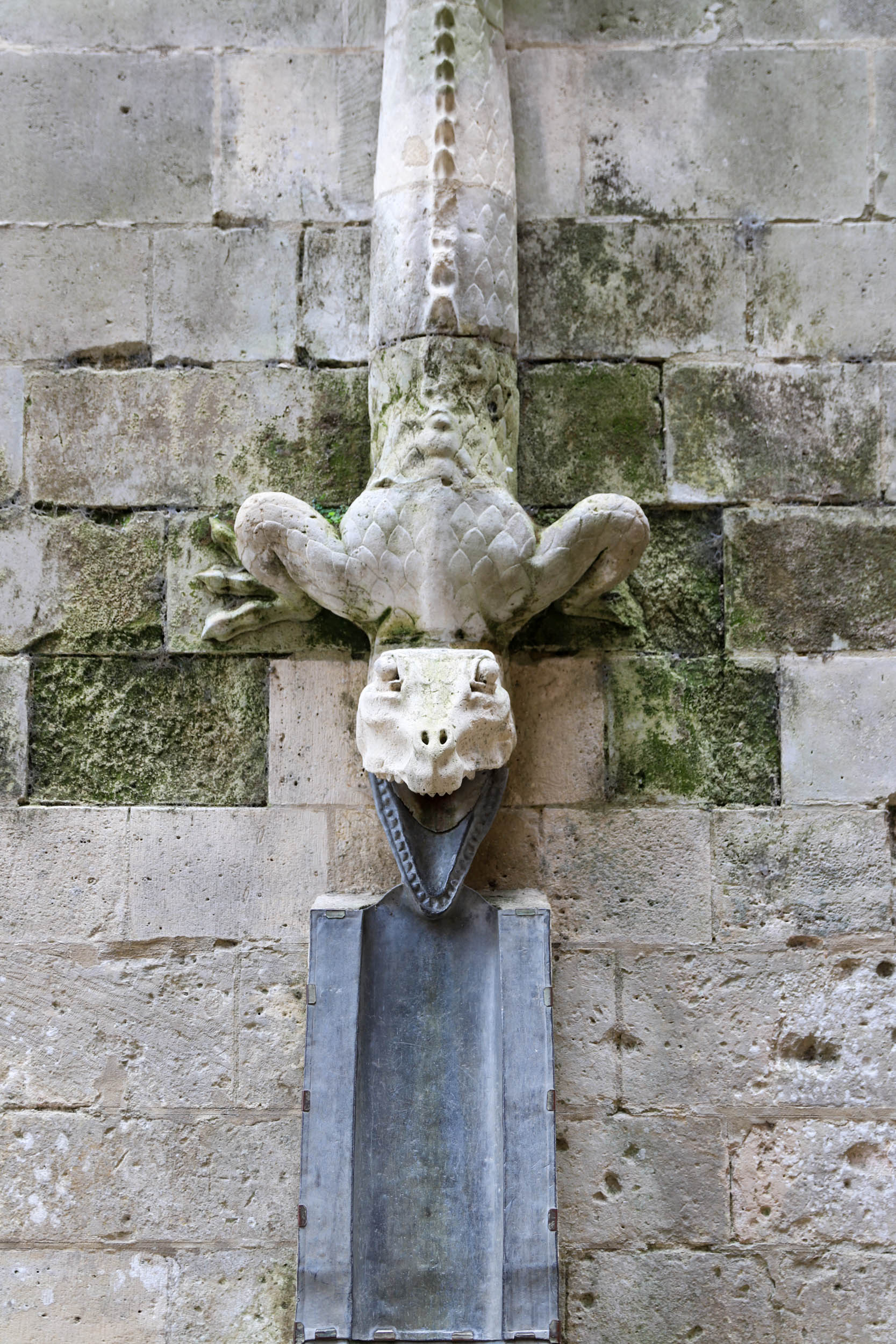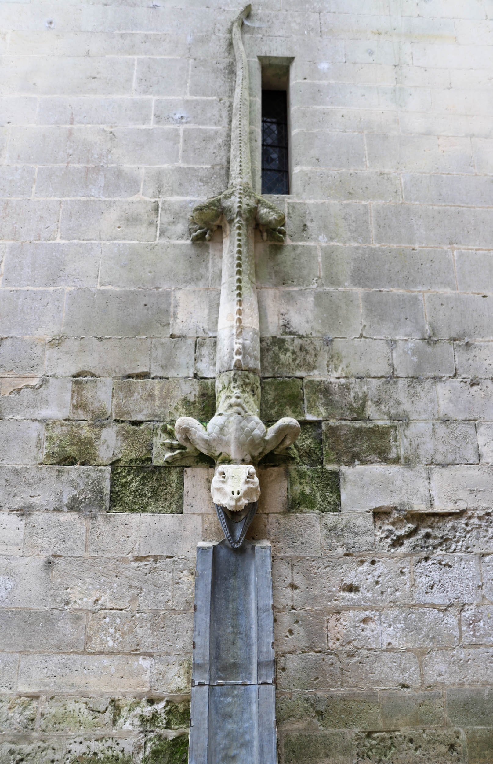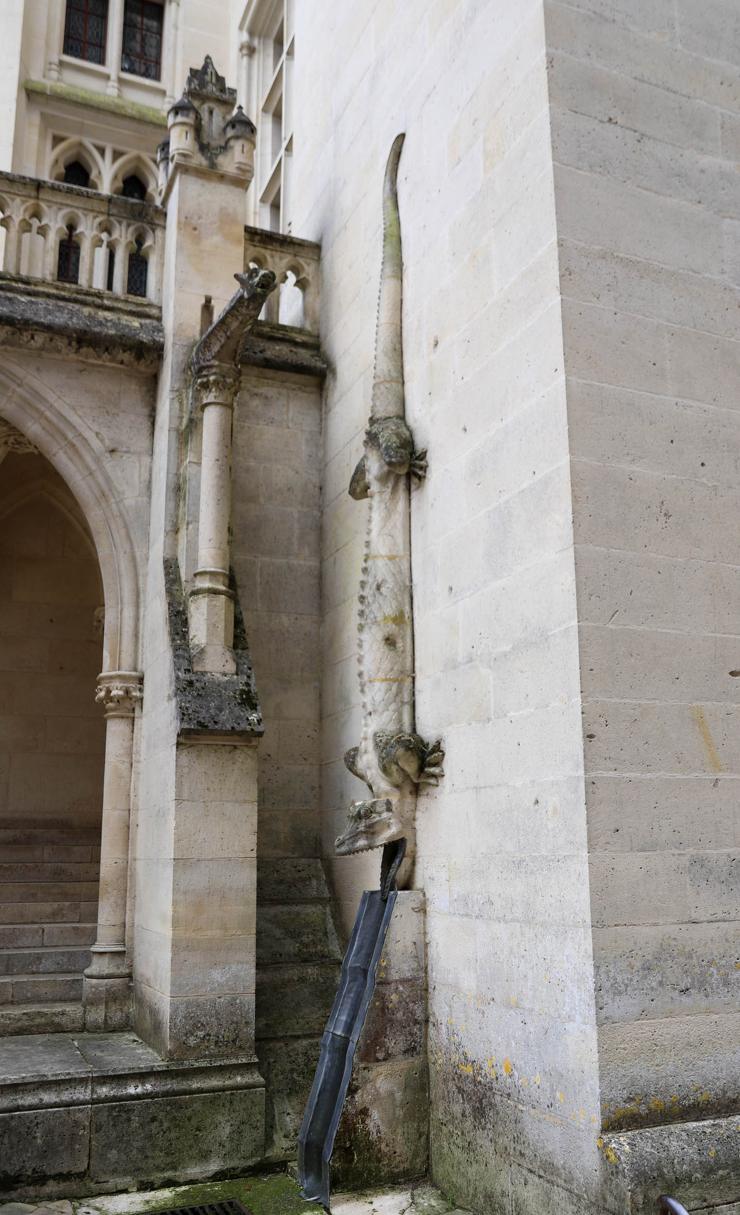 Viollet-le-Duc va donc, comme à son habitude, réinterpréter le Moyen Age. Il va imaginer des chimères, dragons et autre bestiaire imaginaire. Vous verrez par ailleurs plusieurs chats sculptés alors qu’au Moyen-Age ces derniers n’étaient pas du tout appréciés (associés aux sorcières) et, par conséquent, n’apparaissaient jamais sur les façades des châteaux de l’époque.