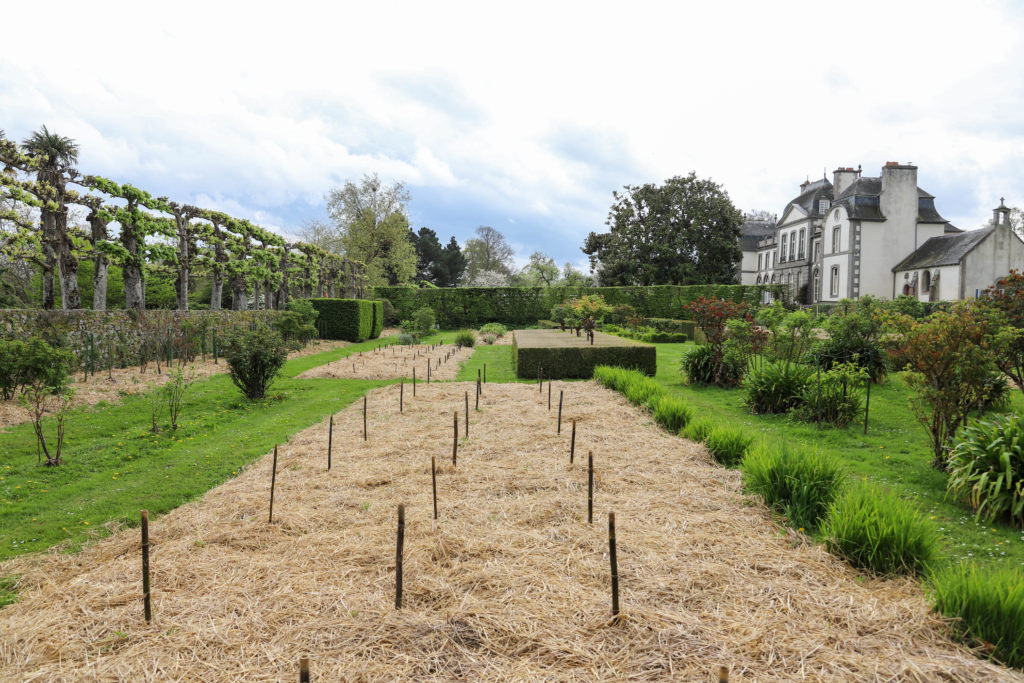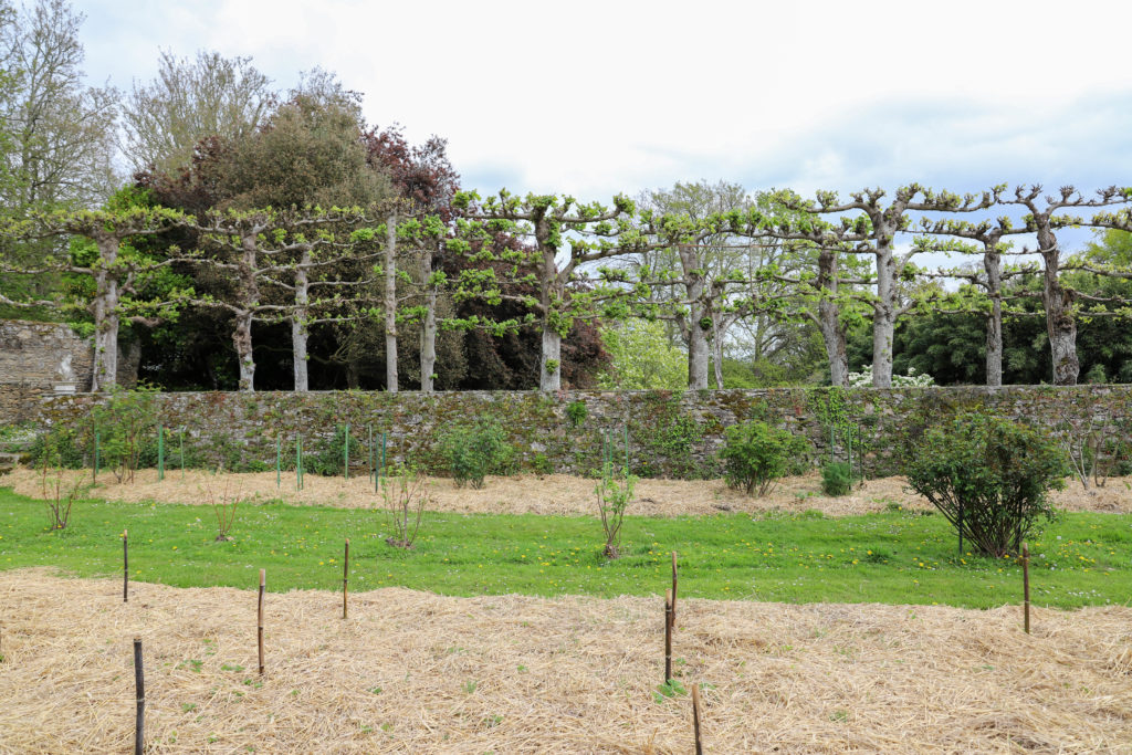 Lorsque je visite des jardins, j’adore les potagers, d’autant plus lorsqu’ils sont classés monuments historiques. Ils ont un charme qui me plait beaucoup et sont souvent aussi beaux qu’un jardin fleuri. Nous sommes allés visiter le jardin au printemps, il était donc peu fourni. Néanmoins son emplacement, près de la demeure et entouré de murs de pierres lui donnaient un charme fou. Le potager est issu d’un plan du XIXème siècle légèrement modifié. Il abrite une partie des collections de rosiers, de dahlias et d’agapanthes du parc. On y accède par une jolie allée bordée d’arbres